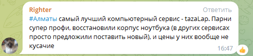 И еще однажды в чате нашего канала рекомендовали сервис-центр в Алматы tazaLap (правда, не знаем, работают ли они с SSD).