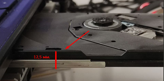 Их существует всего два вида, различаются по высоте - на 12,7 мм и на 9,5 мм. В основном, на старых ноутбуках стоят 12,7 мм. Понять, какой вам именно нужно покупать, можно с помощью линейки. Необходимо измерить высоту вашего дисковода. Мы измерили вот здесь:
