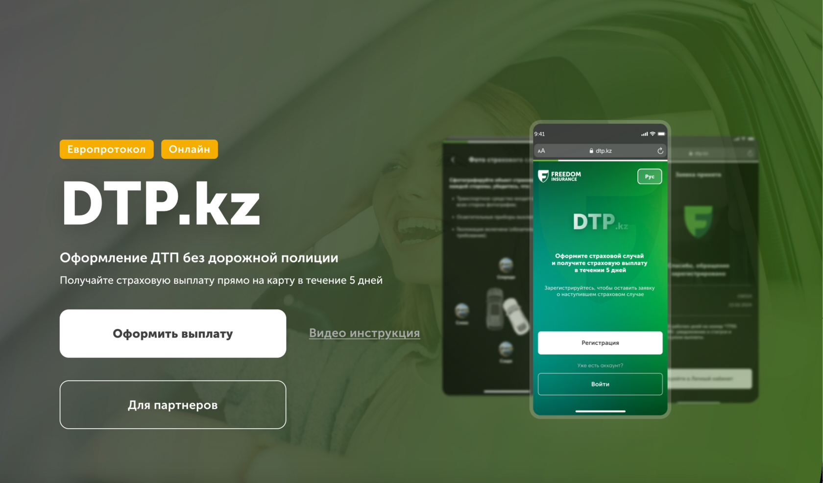 Как пользоваться сайтом? Обоим участникам надо перейти на сайт dtp.kz и оформить заявку по инструкции, которая там есть. Процесс оформления занимает до 15 минут, выплату получите на карту в течение 5 дней. Сайтом могут пользоваться клиенты всех страховых компаний. При возникновении вопросов можно обратиться в круглосуточный и бесплатный колл-центр 5777 или +7 (727) 339 1105.
