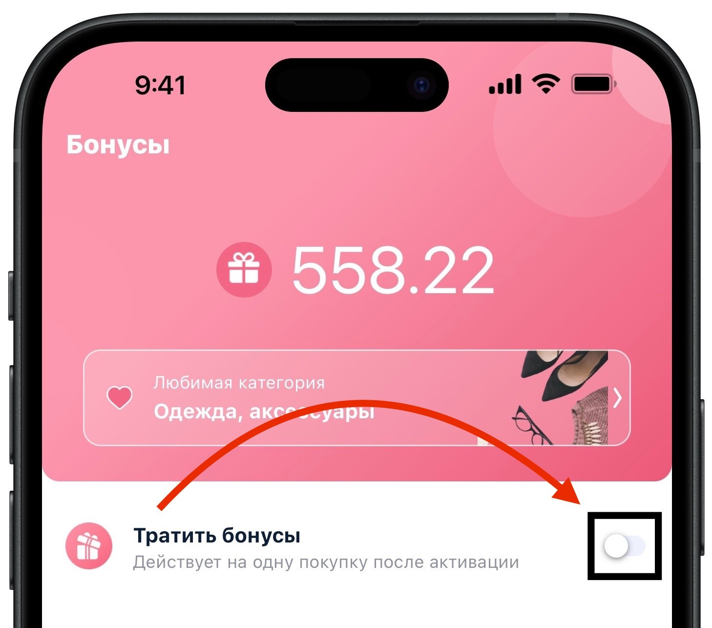 - Переключите тумблер "Тратить бонусы" в сост. "вкл".