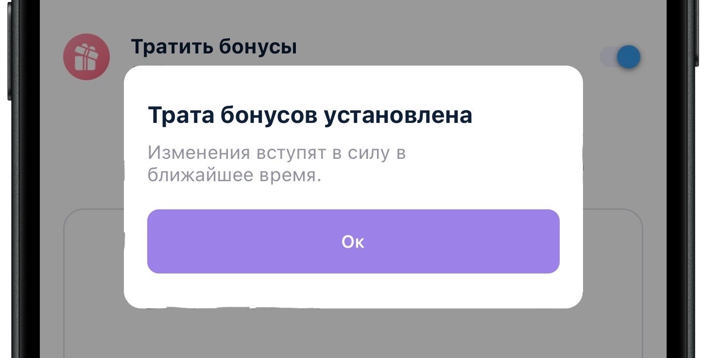 - Вы увидите всплывающее окно, что трата бонусов будет установлена в ближайшее время.