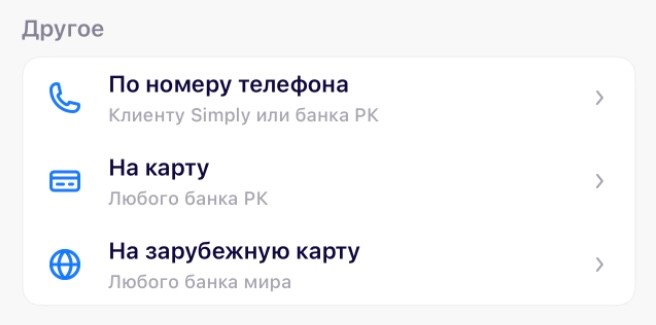 5. Выберите удобный способ перевода. Лимит без комиссии в месяц 50 000₸